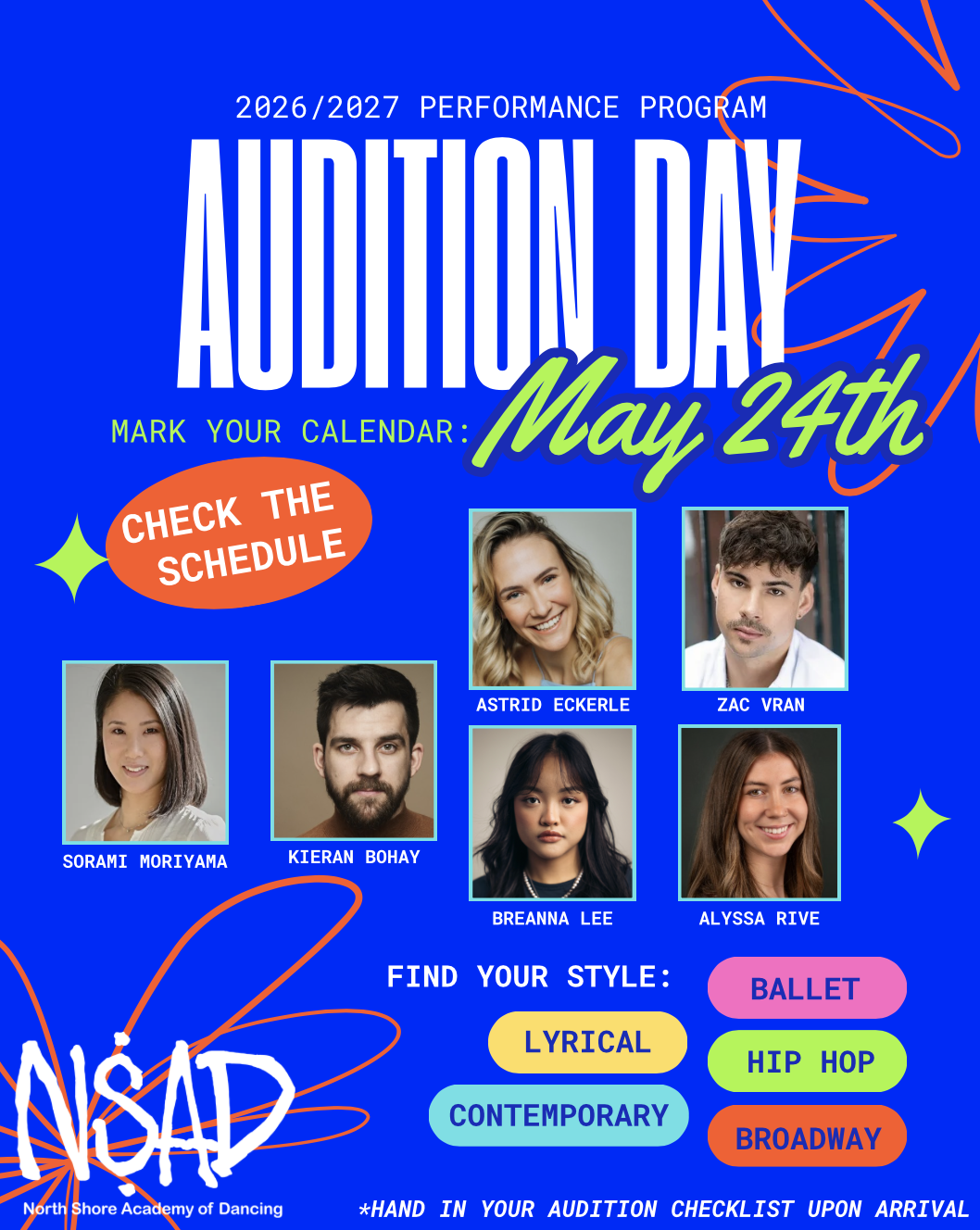 Auditions for the 2026-2027 Season will be held on May 24th at NSAD, class times are listed below.